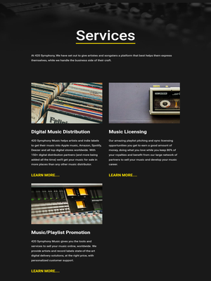420 Symphony Music is a Music Licensing and Digital distribution Platform that helps artists and Indie labels to get their music into Apple music , Amazon, Spotify, Deezer and all top digital stores worldwide. Their services include;